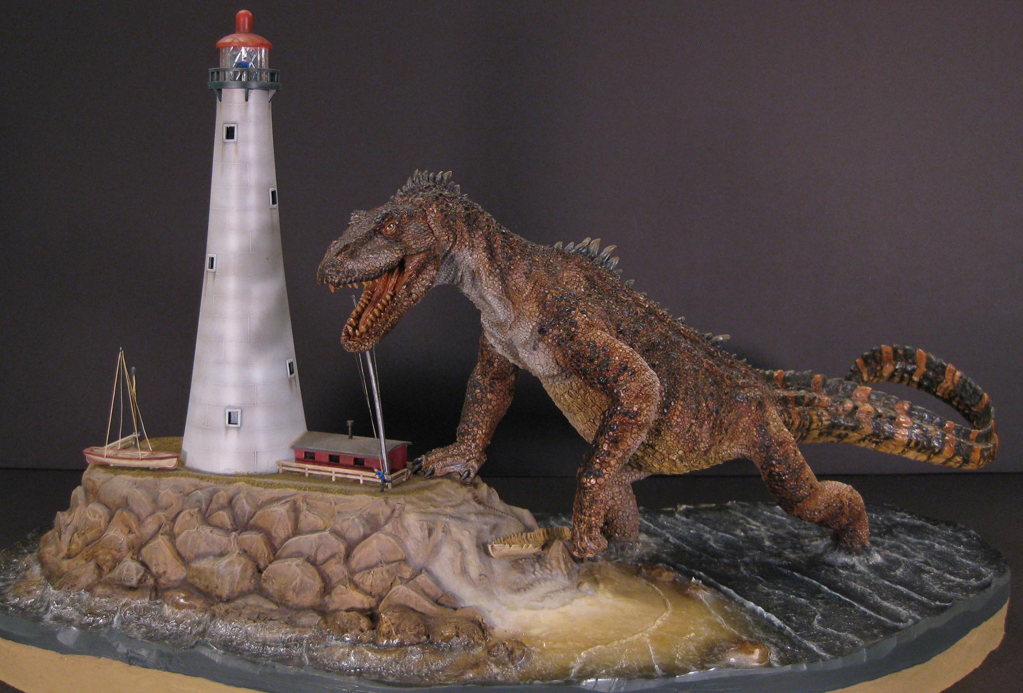 With a Tony McVey sculpted Sea Monster and a Lindberg Lighthouse in N scale.