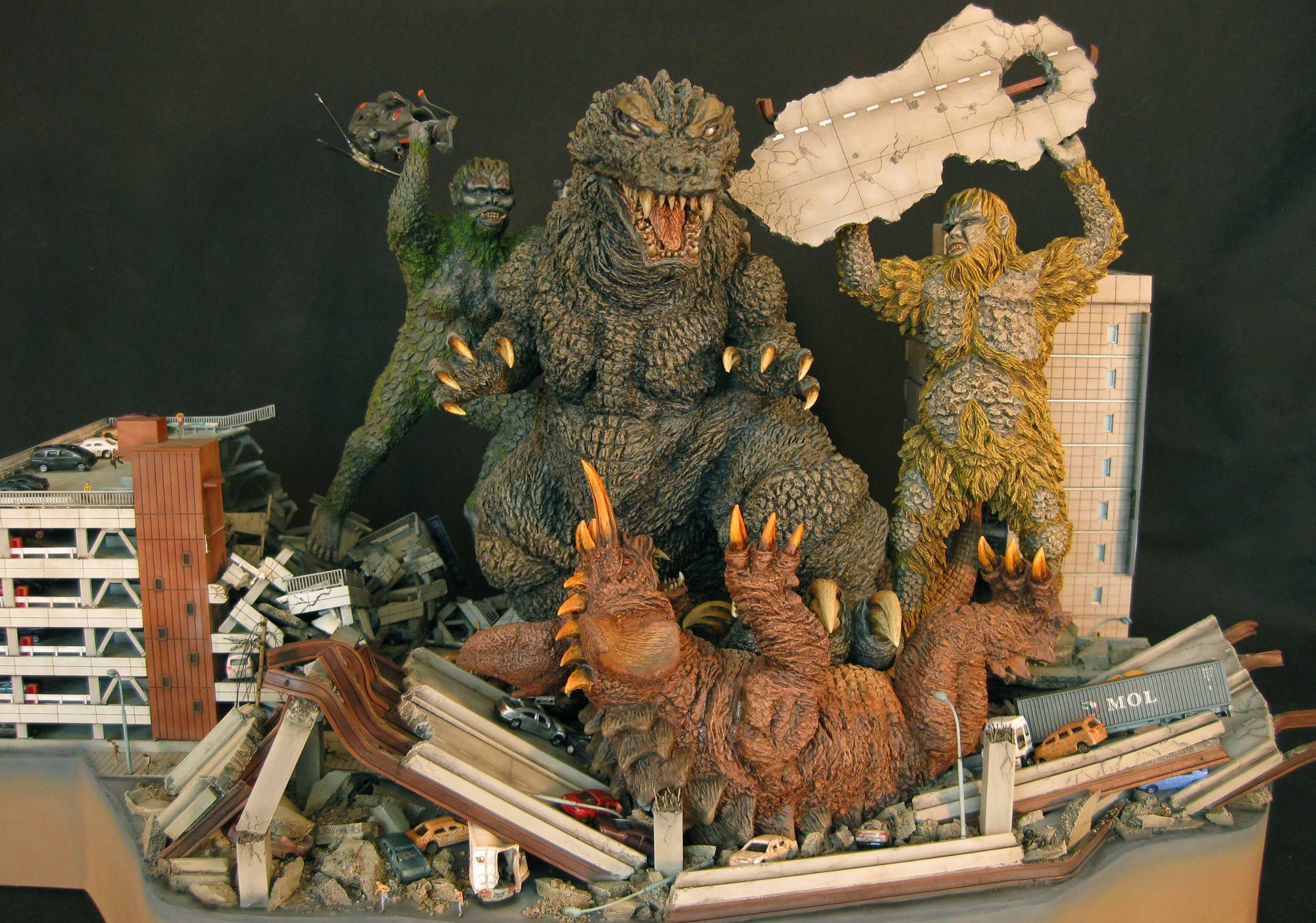 Kits used in building this project: Gow Row Godzilla vs Baragon, Daimos Gaira (Green Gargantua) & Sanda (Brown Gargantua)