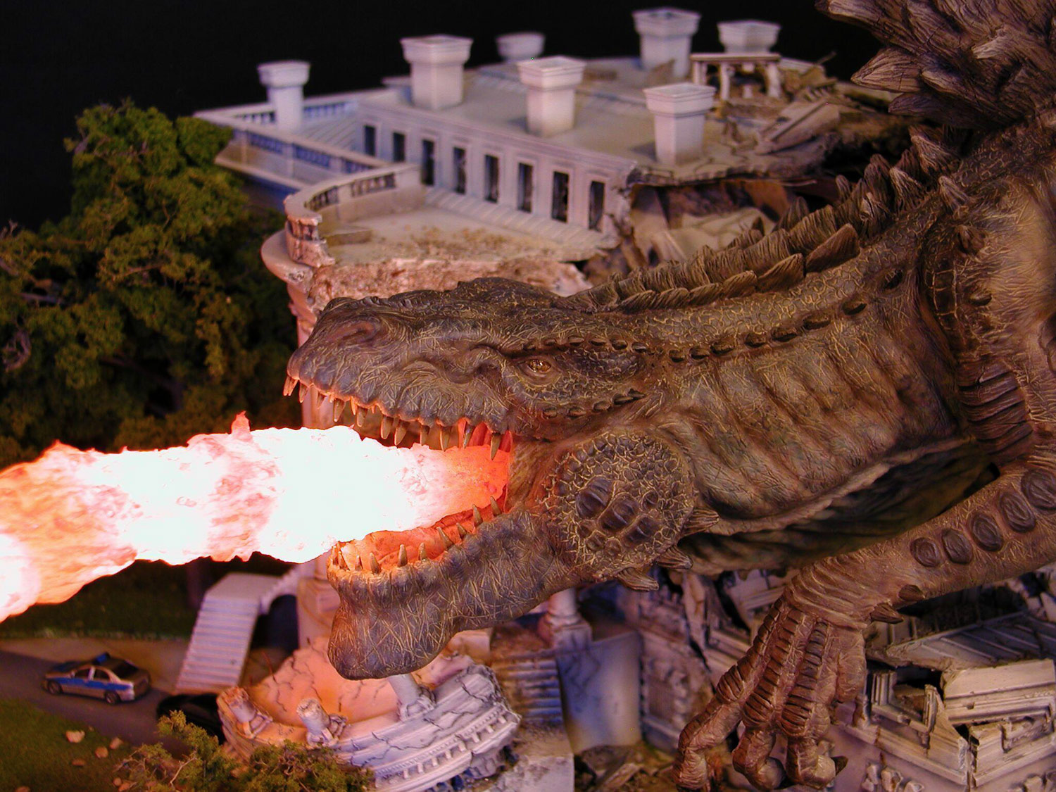 Released under the name Radioactive fire Monster. Custom diorama using a Lindberg White House and N scale details. Article for Amazing Figure Modeler #40.
