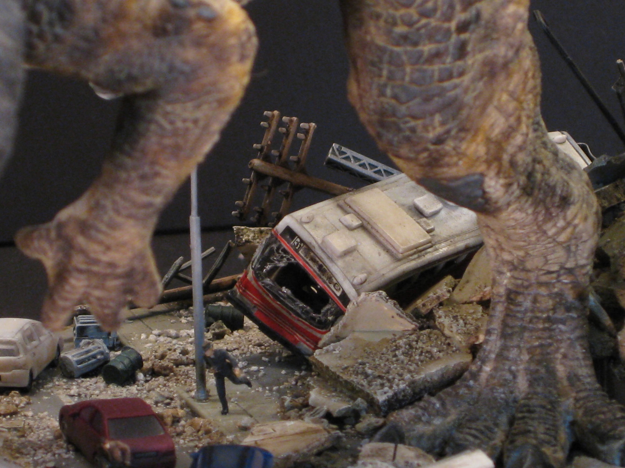 A King Kong vs. Godzilla diorama using Roostercat-Zilla by Galilao and King Kong by Bill Weiger,